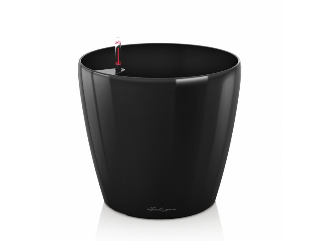 Samozavlažovací květináč Lechuza Classico 28 černá má lakovaný povrch s lesklým lakem. Květináč nemá vypouštěcí ventil a je tudíž primárně určen pro použití v interiéru. Komplet obsahuje květináč a samozavlažovací set zahrnující separační desku, která odděluje zeminu od zásobníku vody, plnící šachtu na vodu, měrku vody a sáček Lechuza PON na drenážní vrstvu.
