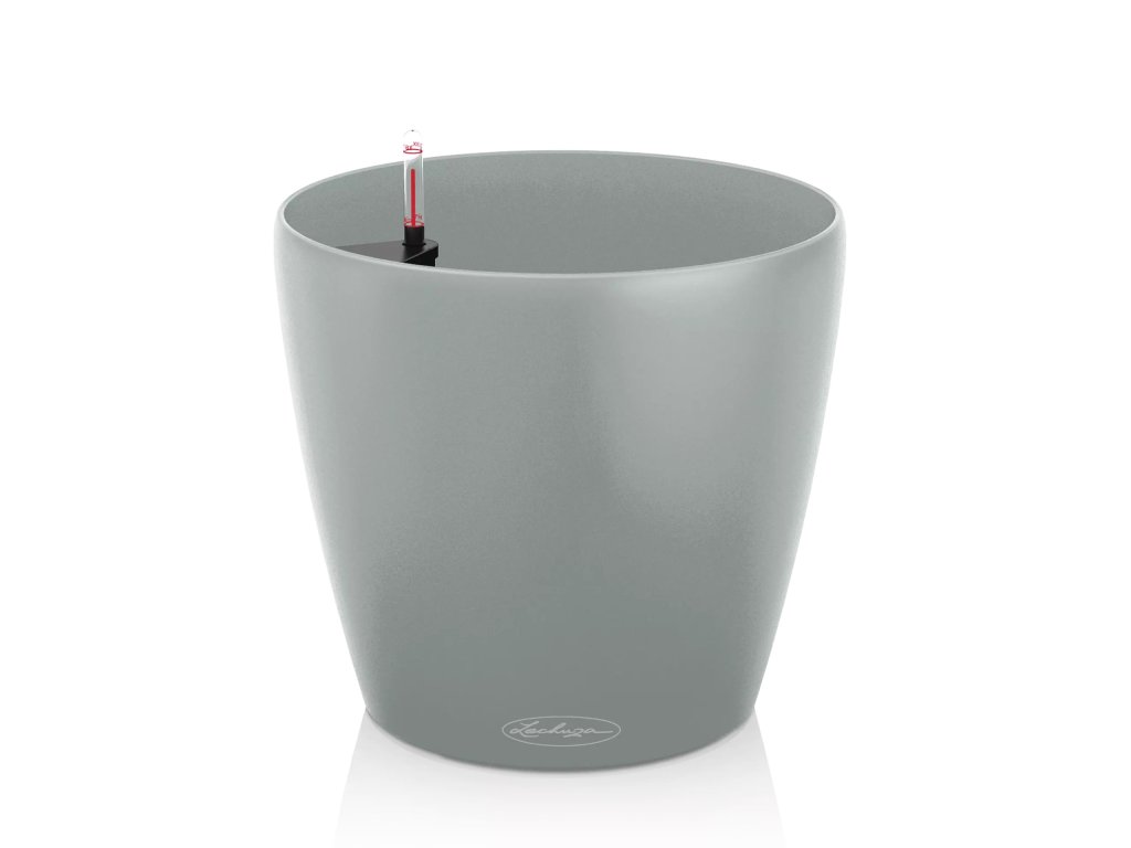 Samozavlažovací květináč Lechuza Classico Color 60 světle šedá je vyroben z probarveného plastu a má matný povrch. Vzhledem k tomu, že má zabudovaný přepad a vypouštěcí ventil, je možné jej použít jak v interiéru, tak i ve venkovním prostředí. Ideální je k umístění na terasy, balkony či venkovní chodníky. Komplet obsahuje květináč a samozavlažovací set se sáčkem Lechuza PON na drenážní vrstvu. K této velikosti je možné dokoupit kolečka.