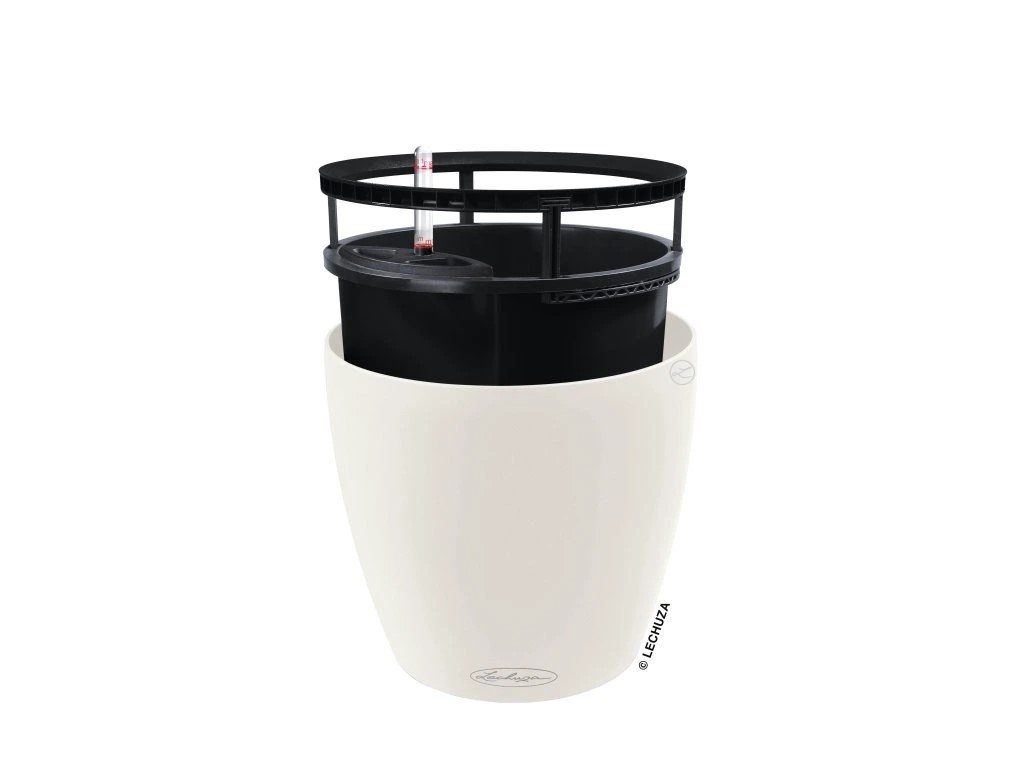 Samozavlažovací květináč Lechuza Classico Color LS 50 bílá je vyroben z probarveného plastu a má matný povrch a na rozdíl od Classico Color obsahuje vyjímatelnou sázecí vložku s výsuvným rámem rukojeti. Vzhledem k tomu, že má zabudovaný přepad a vypouštěcí ventil, je možné jej použít jak v interiéru, tak i ve venkovním prostředí. Ideální je k umístění na terasy, balkony či venkovní chodníky. Komplet obsahuje květináč, vyjímatelnou sázecí vložku a samozavlažovací set se sáčkem Lechuza PON na drenážní vrstvu. Pro tuto velikost je možnost dokoupení koleček.