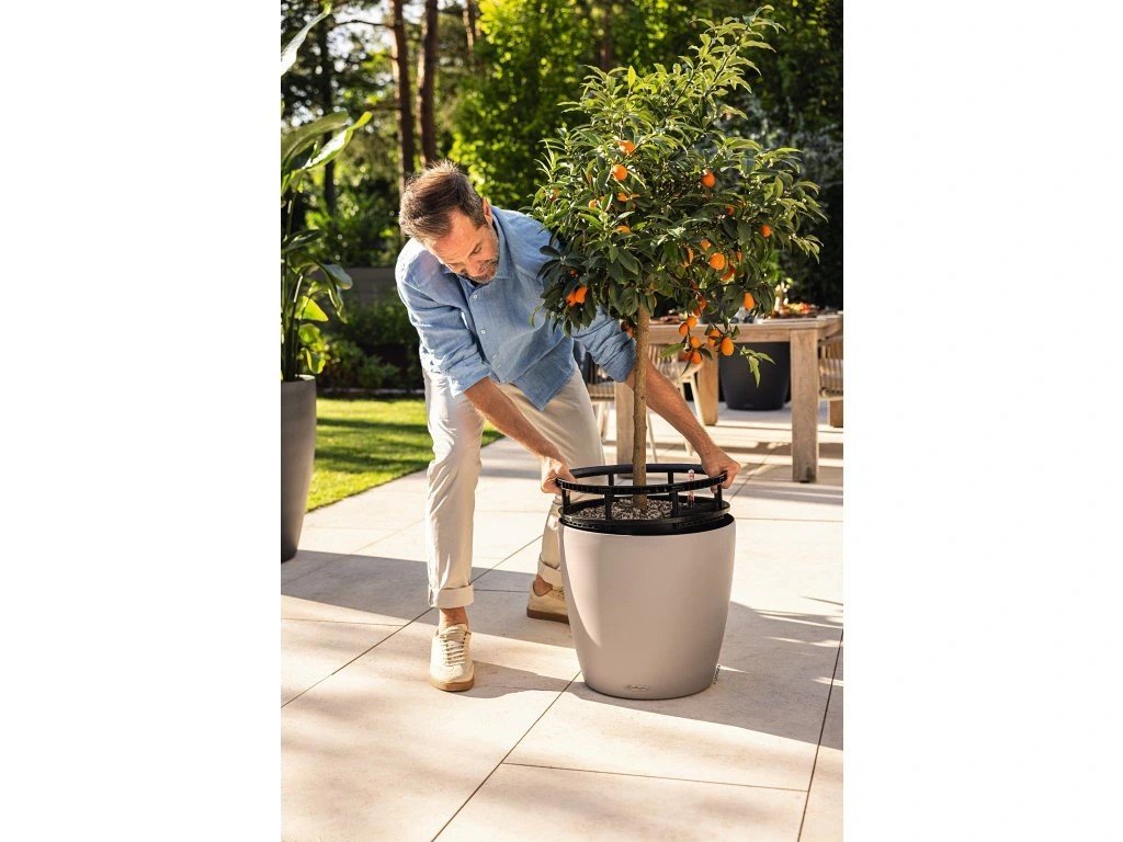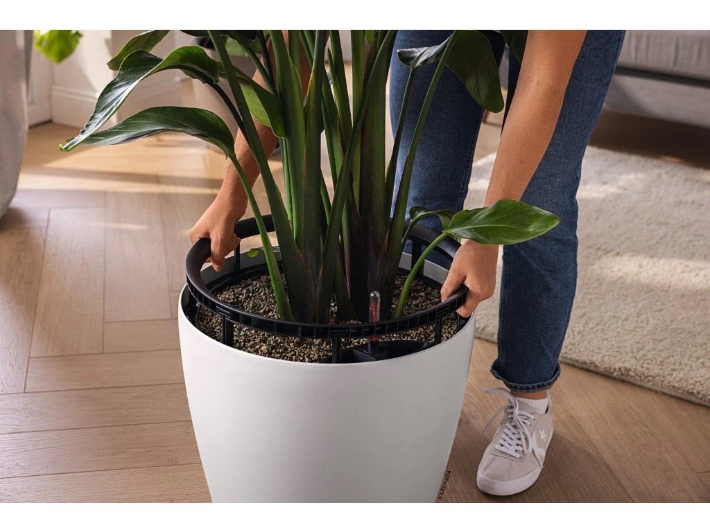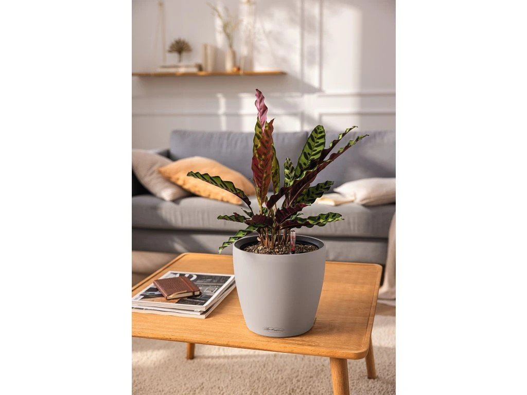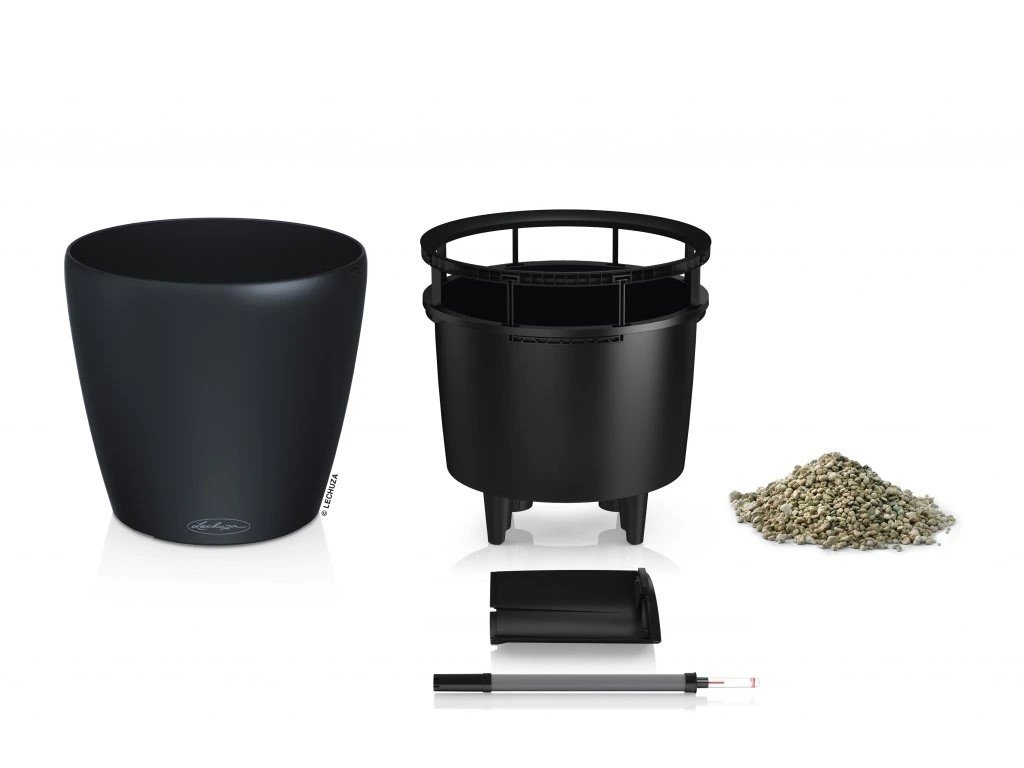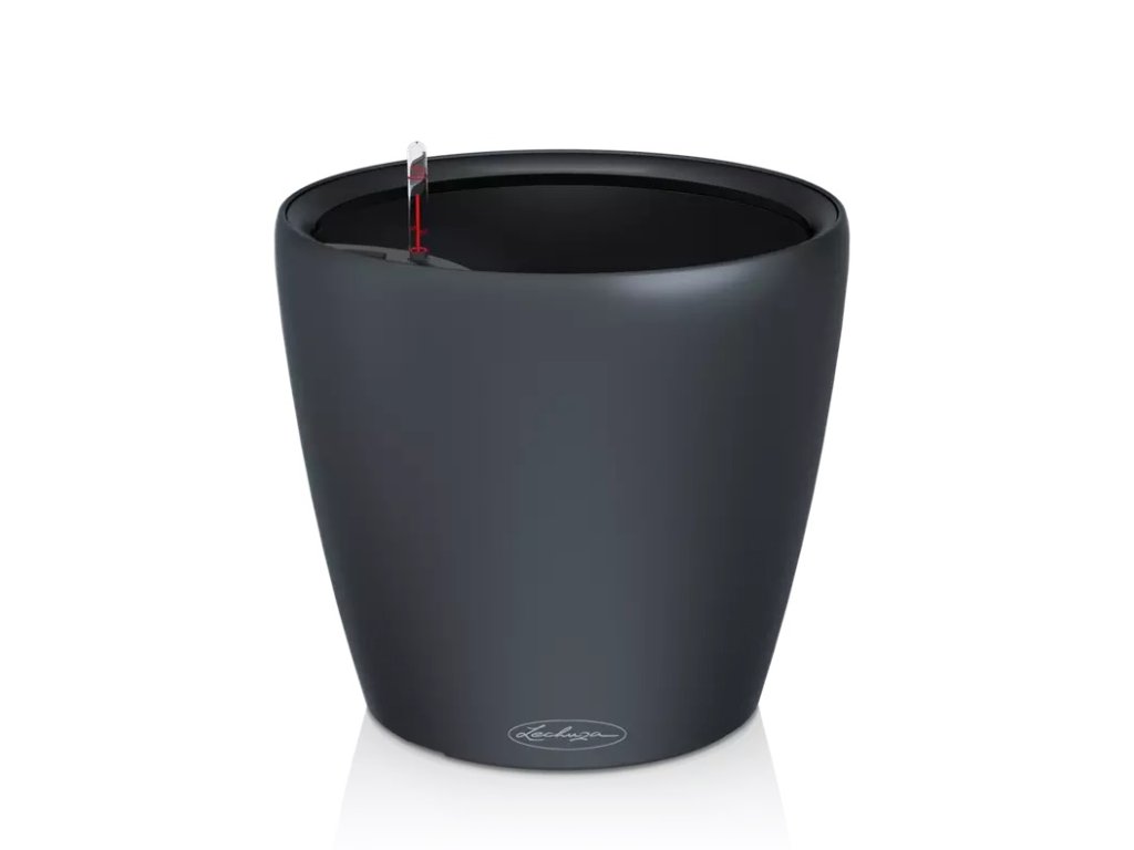 Samozavlažovací květináč Lechuza Classico Color LS 50 břidlicová je vyroben z probarveného plastu a má matný povrch a na rozdíl od Classico Color obsahuje vyjímatelnou sázecí vložku s výsuvným rámem rukojeti. Vzhledem k tomu, že má zabudovaný přepad a vypouštěcí ventil, je možné jej použít jak v interiéru, tak i ve venkovním prostředí. Ideální je k umístění na terasy, balkony či venkovní chodníky. Komplet obsahuje květináč, vyjímatelnou sázecí vložku a samozavlažovací set se sáčkem Lechuza PON na drenážní vrstvu. Pro tuto velikost je možnost dokoupení koleček.