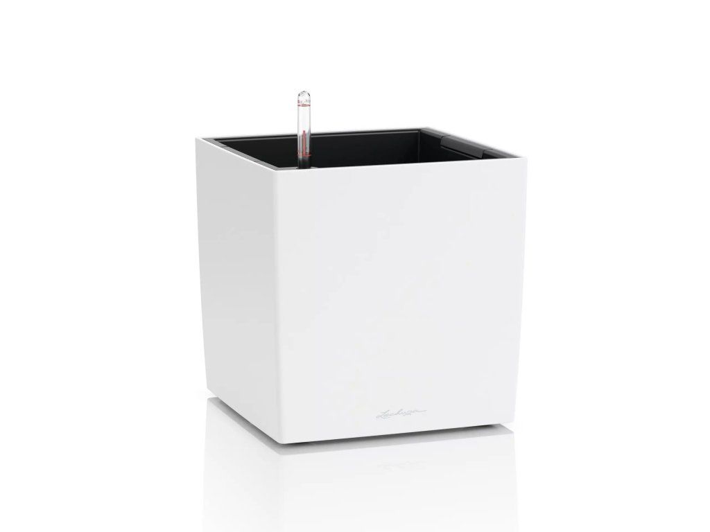 Samozavlažovací květináč Lechuza Cube Color 35 bílá je vyroben z probarveného plastu a má matný povrch. Vzhledem k tomu, že má zabudovaný přepad a vypouštěcí ventil, je možné jej použít jak v interiéru, tak i ve venkovním prostředí. Ideální je k umístění na terasy, balkony či venkovní chodníky. Komplet obsahuje květináč, separační desku, zavlažovací šachtu, měrku hladiny a sáček Lechuza PON na drenážní vrstvu.