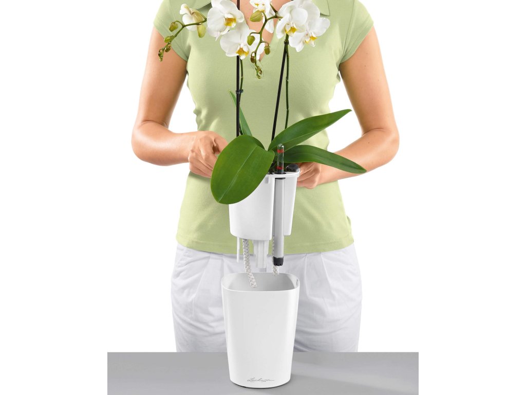 Samozavlažovací květináč Lechuza Deltini červená mat má lakovaný povrch s matným lakem. Vzhledem k jeho velikosti je ideální pro umístění na stoly, parapety či poličky. Vzhledem k tomu, že nemá zabudovaný přepad a vypouštěcí ventil, není možné jej použít ve venkovním prostředí, kde by do něj mohlo napršet - přebytečná dešťová vody by neměla jak odtéct. Komplet obsahuje květináč a samozavlažovací set zahrnující vyjímatelnou sázecí vložku v barvě obalu, měrku na vodu a sáček Lechuza PON postačující na kompletní zasazení rostliny bez potřeby dalšího substrátu. Ideální pro pěstování menších druhů orchidejí či jiných malých druhů rostlin.